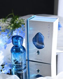 箱を開けると、香りの栞と小さな物語が現れ、香水を取り出す瞬間も、ときめきを感じられる。栞紐をイメージしたサテンリボンを加えて、特別な開封体験にもこだわった。